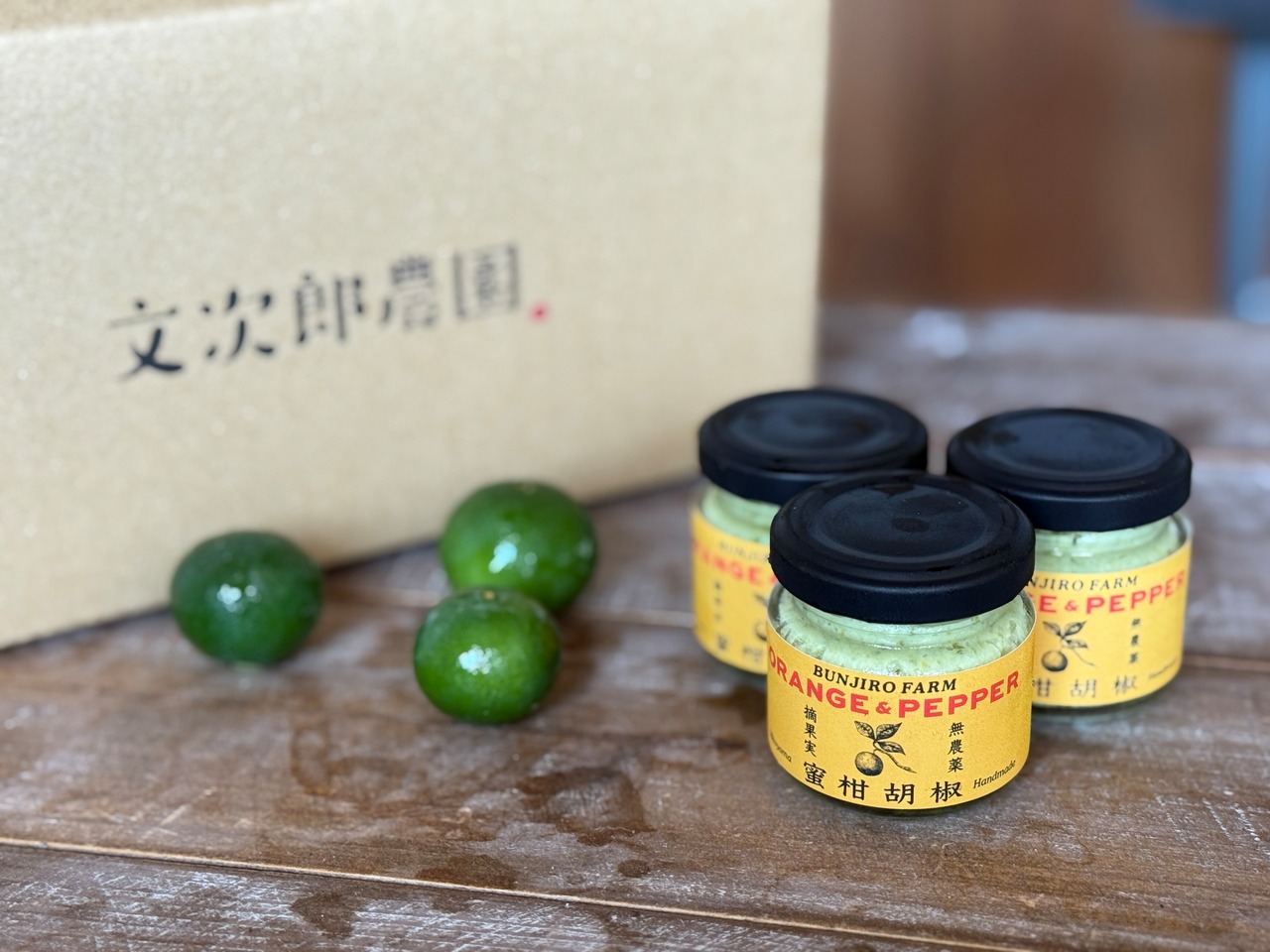 材料は小豆島のお塩、御塩、自家栽培の青唐辛子「インドジンウソツカナイ」、そして文次郎農園で間引いた摘果みかん。すべて島で育った素材を使って、「蜜柑胡椒」を手づくりしました。